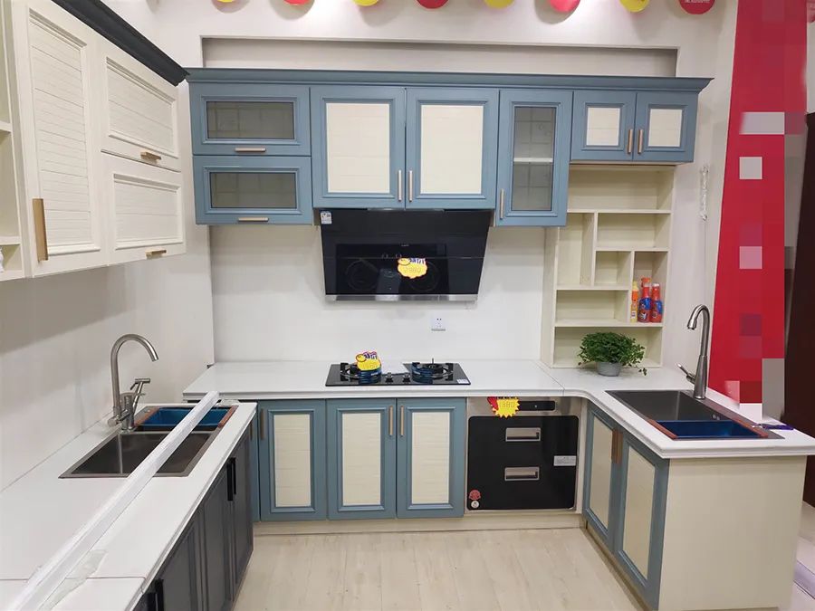 陶瓷橱柜,是铝合金的框架,嵌上陶瓷板。